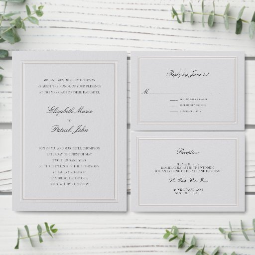 Complete your Elevated wedding suite with this Formal Modern Classic RSVP card, designed to coordinate beautifully with your ivory invitation. Featuring a refined double frame and timeless typography, this card reflects the same elegant balance of tradition and modern design found throughout the collection.
