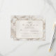RSVP de casamento elegante em um estilo mais formal com um layout clássico de quadros dourados e texto com uma borda ornamentado paisley. Este exemplo adiciona um toque moderno com o seu fundo no champanhe de moda shimmery beige paisley. Adicione os detalhes do evento em uma fonte de serifa para seu recurso tradicional. Procure ID767 para ver outras opções de cores para este design.