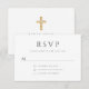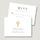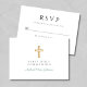 Cartão RSVP Green Script Religious Cross Boy First Communion