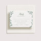 Um clássico design de RSVP com texto personalizável e elegantes folhas de cor d'água Eucalyptus.