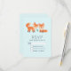 Cartão RSVP com uma ilustração gráfica de 2 raposas de laranja bonitinhas e felizes. Fundo azul claro.