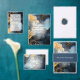 Cartão RSVP Indígio Azul e Abstrato Dourado