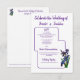 Este cartão RSVP de cor d'água da íris na moda púrpura pode ser personalizado com seus próprios títulos e informações sobre resposta, viagem, acomodação, preferências de comida e dados de presente e registro, bem como um cartão na parte traseira para que o pessoas envie uma resposta pessoal. Essa placa RSVP pode ser acoplada a convites acrílicos e de velum que não têm espaço para essas informações adicionais. A design é moderna, simples e gráfica, com bordas macias e arredondadas. Uma série de papéis de carta de casamento e suprimentos coordenados também está disponível usando esta design