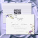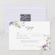 Anuncie seu dia com este cartão de resposta de casamento romântico Jardim de Flores Silvestres de Lavanda com um código QR, apresentando flores delicadas em aquarela em um fundo roxo lavanda claro. Perfeito para um casamento de jardim na primavera ou verão, este lindo design oferece uma estética caprichosa e natural. Este convite romântico é totalmente personalizável e define um tom suave e adorável para sua celebração. Criado por Simply Farmhouse Press.