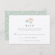 Projetada para coordenar com nossa coleção de convites para casamento Koi Pond, esta placa de RSVP aquática apresenta uma pequena ilustração de flor de lótus ou lilypad no topo com seus detalhes de RSVP em carvão suave. A placa se reverte para um padrão de peixe koi em tom suave em verde-tom para um olhar moderno em zen.