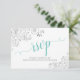 Cartão RSVP Lacy Silver & Aqua em Casamento de Script Elegante