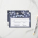 Texto editável RSVP de casamento com opções de menu que incluem a terra maravilhosa russa do inverno, os flocos de neve brancos e as luzes penduradas na tela azul escura da cinza. Ideal para o seu elegante país russo de inverno | casamento temático maravilhoso.