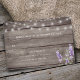 Corda de impressão de madeira rusticada acende a placa de lavanda RSVP de d'água.
