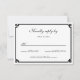 Crie as suas próprias cartas RSVP de casamento em um estilo clássico de caligrafia emparelhado com a elegante fonte do estilo de todos os bonés. Você pode personalizar todas as cores nesta design para combinar com sua paleta de cores de casamento. Uma borda do estilo chave grego preto minimalista para as suas cartas "gentilmente respondam por".