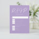 Cartão RSVP Linda Casamento Vertical Branco Roxo Lilac