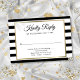 Um cartão RSVP elegante com uma borda de foil dourado falso elegante emoldurando os detalhes do seu evento em tipografia sofisticada sobre um fundo listrado clássico preto e branco. Personalize com os detalhes do seu evento especial. Desenhado por Thisisnotme©