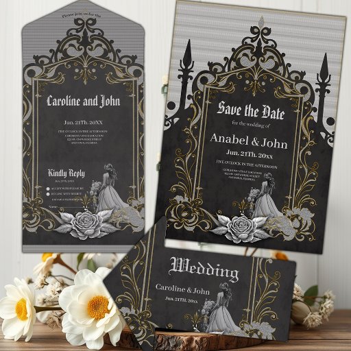 Luxo encontra romance. Um quadro preto, prateado, de ouro, desenhado de forma artística, adornado com decorações delicadas e filigranas. Estes detalhes amorosos dão ao design um toque opulente e engolem o espectador com um sentimento de antecipação festiva. Dentro deste quadro mágico, uma mulher revela-se num fantástico vestido de noiva. A design exude uma aura de exclusividade e calor