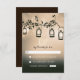 Cartões de resposta de casamento do país rústico castanho com luzes de jardim - lanternas de óleo penduradas nos galhos da velha árvore. Cartões de resposta para o verão, primavera, queda ou casamento no inverno. Design criativa e moderna para temas de casamento ao ar livre. OBSERVE que a palavra RSVP é imagem - você pode apagá-la, movê-la ou torná-la maior/menor depois de pressionar o botão personalizá-la. —