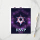 Uma estrela fractal, multicolorido, parecida com a folha de alumínio, num fundo azul escuro. Este mesmo design é oferecido em convites para o Bar/Bat Mitzvah.