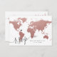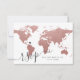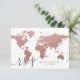 Cartão RSVP Mapa Mundial Tom Rosa Dourado Tema Viagem