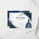 Cartão RSVP Marinho Azul Floral Prata Princesa Quinceañera Res