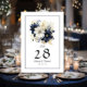 Cartão rsvp de casamento floral azul, branco e ouro marinho personalizável para suas especificações de evento.