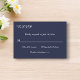 Esta elegante placa RSVP azul marinho é perfeita para um casamento moderno. a simples design apresenta uma caligrafia branca elegante sobre um fundo azul marinho.