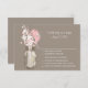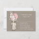 O cartão RSVP é perfeito para um casamento no estilo country ou talvez você apenas ame Mason Jars! Mason Jar pendurado num gancho cheio de flores selvagens do campo. Um fundo castanho quente contra o Jar Mason enforcado e flores silvestres cores de pinks e brancos. Se você tiver alguma dúvida sobre este design ou quiser uma mudança de cor, envie um e-mail para mim paula@labellarue.com Além disso, verifique se os Cartões SENTADOS RSVP, RECEPÇÃO e CONVIDADO correspondem!