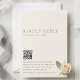 Elegant, simple, classic, minimalist wedding response card with the text that says "Kindly reply by..." This RSVP card is simple and clean, perfect for modern couples or traditional. Upload your own QR code.