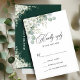 Preencha a sua suíte de casamento com o nosso Cartão RSVP de Casamento Moderno Emerald Greenery. Apresentando um sofisticado design de aquarela de folhas de eucalipto em conjunto com delicadas flores de jasmim, este cartão combina perfeitamente com o seu verde ou tema de casamento em aquarela. Sua elegância natural garante que as respostas de seus convidados cheguem com estilo e graça, definindo o tom perfeito para sua celebração.
