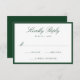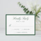 This wedding RSVP card features elegant dark green calligraphy script at the top, paired with classic serif lettering and space for your desired wedding response date. A rich dark green border frames the design, adding depth and structure while maintaining a clean, modern aesthetic. The balanced layout offers a refined way for guests to reply, making this RSVP card ideal for modern classic, formal, and estate-style weddings. Personalize the wording to create a response card that feels cohesive and elevated.