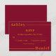 Esta elegante carta de burgundy e de ouro RSVP é perfeita para um casamento moderno. a simples design apresenta uma elegante caligrafia de ouro sobre fundo de burgundy.
