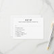 Esta elegante placa RSVP apresenta um sofisticado design preto e branco, perfeito para uma estética de casamento moderna e eterno. A frente exibe um formato RSVP clássico com tipografia serif refinada, permitindo que os hóspedes respondam facilmente ao selecionar suas preferências de refeição. O verso exibe um monograma botânico minimalista com as iniciais do casal e a data do casamento, acrescentando um toque pessoal e na moda. O na moda preto e branco cria um toque refinado e luxuoso. Ideal para casamentos formais, modernos ou clássicos, este cartão RSVP garante uma aparência elegante e coesa para a sua suíte de papelaria de casamento.
