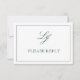 Cartão RSVP Monograma Clássico de Script Verde Emerald Sem Ref