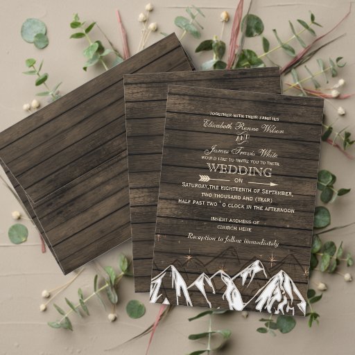 Barn Wood mountain scene wedding invitations SetCriado por Maria G