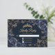Navy gold floral Quinceanera RSVP reply card. Features, script font, gold butterflies, watercolor roses and tiara. Perfect for an elegant princess style glam celebration. Personalize with your own details.