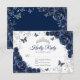 Cartão RSVP Navy Silver Floral Quinceanera Reply