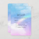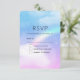 Cartão RSVP com uma imagem de fundo suave e adorável. Pastel blues e pinks nuvens e um arco-íris mágico.