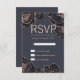 Cartão RSVP O azul marinho Dourado cor-de-rosa floresce