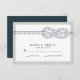 Projetado para combinar com nossos convites e acessórios do casamento do "The Blue Knot", este RSVP de Casamento de Música Náutica apresenta uma ilustração do nó do desenhar de mão no estilo de vintage em azul marinho. Perfeito para praia, verão, casamentos náuticos ou festas costeiras Esta design faz parte de uma coleção, por favor visite nossa loja para encontrar itens correspondentes. Para obter uma solicitação personalizada, entre em contato conosco em citronelladesign@gmail.com