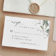 Cartão rsvp moderno minimalista de resposta botânica verde-de-granizo ao casamento, com um roteiro de caligrafia cômica. ++++++++++++ Fácil de personalizar com seus detalhes! Adequado para o primavera de verão no jardim de outono modernos e elegantes casamentos clássicos.
