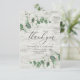 Belo e delicado cartões de agradecimentos de casamento de folhagem de eucalipto. Parte de uma coleção moderna. madeira branca