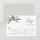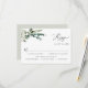 Projetado para coordenar com a nossa coleção de casamento Rustic Greenery, este cartão RSVP personalizável, apresenta cores aquáticas mistas de botânica verde, um roteiro de caligrafia moderno emparelhado com uma fonte serif clássica em preto. Itens correspondentes disponíveis.