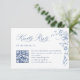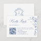 Na moda, fácil de usar modelos de casamento, mais itens (convites, rsvp, cartas de agradecimento, papelaria e decoração) com o mesmo design estão disponíveis na loja. Para mais personalização, clique em "Personalizar este modelo" e, em seguida, em "Editar usando a Ferramenta Design". Cartão RSVP de Casamento Floral de Jardim Francês Azul Elegante Vintage.