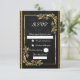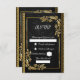 Quadro de ouro floral preto, cartão rsvp elegante