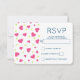 Cartão de RSVP com um padrão fofo composto por corações rosa e verde em um fundo branco.