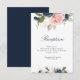 Um design floral com lindas pincéis cor-de-rosa e flores azuis marinhos de aquarela. Este cartão é para informações de recepção de casamento. A cor do marinho Elegante pode ser personalizada. Todo texto pode ser editado para texto, tamanho, tipo de fonte, cor e posicionamento.