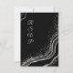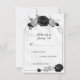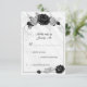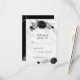 Flores elegantes, pretas e prateadas, com algumas lindas folhas contra cinzas prateadas e cartão botânico de fundo de mármore branco. Os detalhes de brilho são simulados