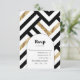 Cartão RSVP Preto Geométrico Moderno e Dourado