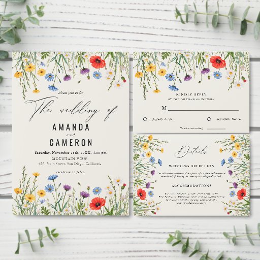 Este charmoso cartão RSVP é perfeito para casais planejando um casamento de primavera ou verão com um tema brilhante e inspirado no jardim. A carta apresenta uma bela ilustração aquosa de um campo de flor silvestre, criando uma atmosfera romântica e encantadora. Os convidados podem indicar facilmente a sua presença e RSVP até à data especificada.