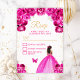 Esta elegante e glamourosa placa rsvp apresenta uma bela princesa com pele escura num vestido de bola rosa quente. O texto combina o script manuscrito e as fontes sans serif modernas para um aspecto elegante e sofisticado. Os arranjos florais, borboletas e confete de ouro criam a mistura perfeita de rústicos e quicos. Perfeito para uma doce festa ou festa de aniversário de dezesseis. Gráficos por www.etsy.com/uk/shop/SunflowerDayLove