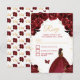 Este elegante e glamouroso cartão rsvp apresenta uma bela princesa com pele escura em um vestido vermelho burgundy. O texto combina o script manuscrito e as fontes sans serif modernas para um aspecto elegante e sofisticado. Os arranjos florais, borboletas e confete de ouro criam a mistura perfeita de rústicos e quicos. Perfeito para uma doce festa ou festa de aniversário de dezesseis. Gráficos por www.etsy.com/uk/shop/SunflowerDayLove
