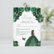 Este elegante e glamouroso cartão rsvp apresenta uma bela princesa com pele escura num vestido de bola verde-escura. O texto combina o script manuscrito e as fontes sans serif modernas para um aspecto elegante e sofisticado. Os arranjos florais, borboleta e confete prateado criam a mistura perfeita de rústico e chic. Perfeito para uma doce festa ou festa de aniversário de dezesseis. Gráficos por www.etsy.com/uk/shop/SunflowerDayLove