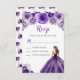Esta placa de gabinete rsvp apresenta uma bela princesa em um vestido de bola roxa escura com arranjos florais. Isso é perfeito para uma festa de aniversário, doce dezesseis ou quinceanera.