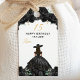 Esta elegante e glamourosa carta de Quinceañera rsvp apresenta uma bela princesa com cabelo escuro num vestido preto. O texto combina o script manuscrito e as fontes sans serif modernas para um aspecto elegante e sofisticado. Os arranjos florais, borboletas e confete de ouro criam a mistura perfeita de rústicos e quicos. Gráficos por www.etsy.com/uk/shop/SunflowerDayLove